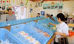 ●野菜の直売 水稲の協業経営化により、農作業に従事する時間が少なくなった高齢者が野菜を減農薬で生産し、加工施設とともに設置した直売所で販売しています。 手数料は15%で、売れ残った野菜ほ生産者が閉店時間に持ち帰るシステムになっています。
